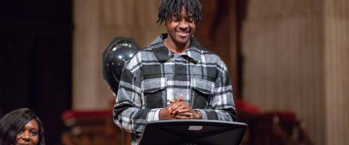 Boy smiling in the choir stalls